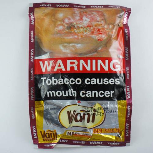 Vani India Karnataka W3 01 Brand Family: Vani Product Type: Smokeless Country: India City: Harohalli (Karnataka ) Collection Date: October, 2017 Price: 68.00 INR (1.05 USD) Features: Not assessed Noncompliant Health Warning Label: Location | Size *Selecting any of the linked attributes above will open a new search, showing all packs that match this attribute.