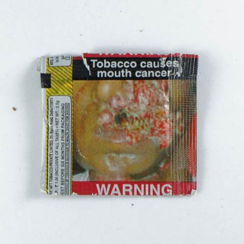 BGM India Rajasthan W3 01 Brand Family: BGM Product Type: Smokeless Country: India City: Bhopalgarh (Rajasthan ) Collection Date: October, 2017 Price: 10.00 INR (0.15 USD) Features: Not assessed Noncompliant Health Warning Label: Size | Comp Label Elements | Comp Text Size *Selecting any of the linked attributes above will open a new search, showing all packs that match this attribute.