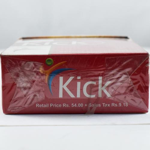 Kick Pakistan W2 01 Brand Family: Kick Product Type: Cigarettes Country: Pakistan City: Lahore Collection Date: December, 2019 Price: 35.00 PKR (0.23 USD) Stick count: 20 Noncompliant Health Warning Label: Not assessed *Selecting any of the linked attributes above will open a new search, showing all packs that match this attribute.
