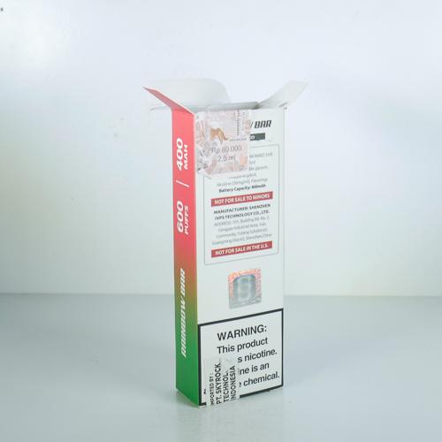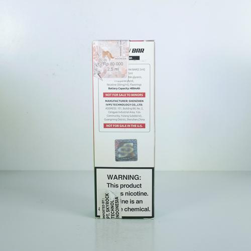 SMOK Indonesia W3 07 Brand Family: SMOK Product Type: Disposable e-cigarette Country: Indonesia City: Surabaya Collection Date: September, 2022 Price: 139000.00 IDR (9.29 USD) Features: Flavor Appeal Noncompliant Health Warning Label: Not assessed *Selecting any of the linked attributes above will open a new search, showing all packs that match this attribute.