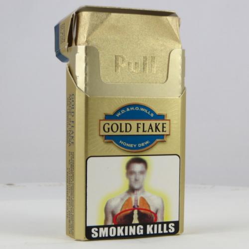 Gold Flake India W1 02 Brand Family: Gold Flake Product Type: Cigarettes Country: India City: Chennai Collection Date: October, 2013 Price: 60.00 INR (0.97 USD) Stick count: 10 Noncompliant Health Warning Label: Not assessed *Selecting any of the linked attributes above will open a new search, showing all packs that match this attribute.