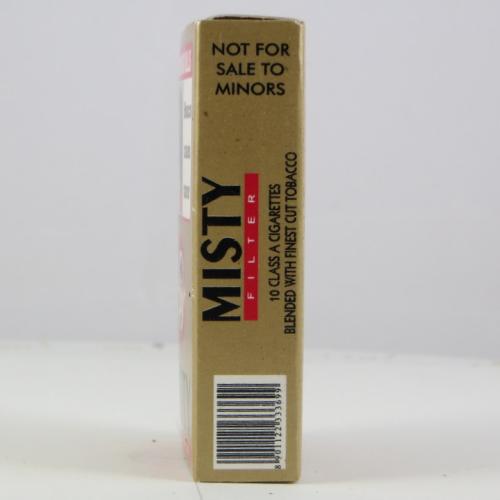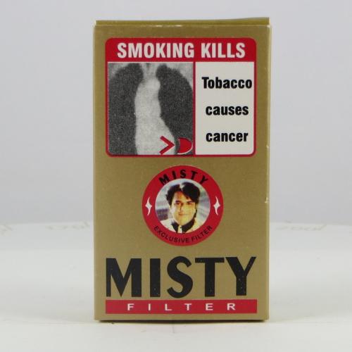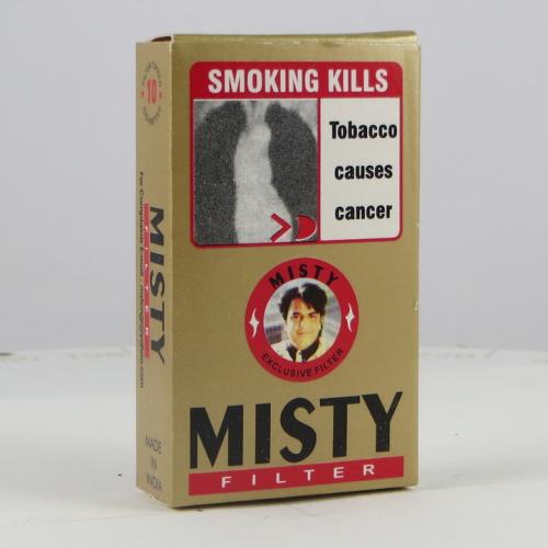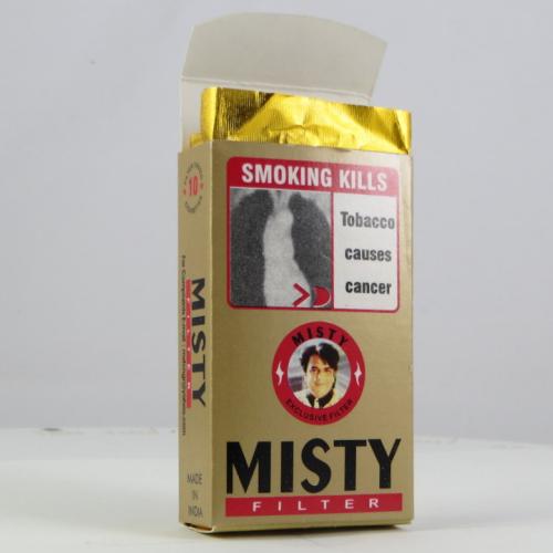 Misty India W1 01 Brand Family: Misty Product Type: Cigarettes Country: India City: Mumbai Collection Date: October, 2013 Price: 25.00 INR (0.41 USD) Stick count: 10 Noncompliant Health Warning Label: Not assessed *Selecting any of the linked attributes above will open a new search, showing all packs that match this attribute.