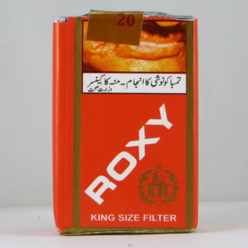 Roxy Pakistan W1 01 Brand Family: Roxy Product Type: Cigarettes Country: Pakistan City: Lahore Collection Date: November, 2013 Price: 10.00 PKR (0.09 USD) Stick count: 20 Noncompliant Health Warning Label: Size *Selecting any of the linked attributes above will open a new search, showing all packs that match this attribute.