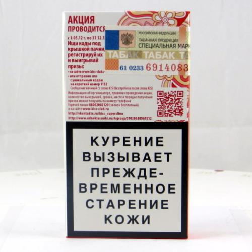 Kiss Russian Federation W1 15 Brand Family: Kiss Product Type: Cigarettes Country: Russian Federation City: Moscow Collection Date: September, 2013 Price: 38.00 RUB (1.13 USD) Stick count: 20 Noncompliant Health Warning Label: Not assessed *Selecting any of the linked attributes above will open a new search, showing all packs that match this attribute.