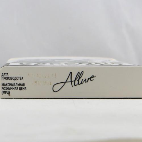 Allure Russian Federation W2 03 Brand Family: Allure Product Type: Cigarettes Country: Russian Federation City: Saint Petersburg Collection Date: September, 2015 Price: 80.00 RUB (1.20 USD) Stick count: 20 *Selecting any of the linked attributes above will open a new search, showing all packs that match this attribute.