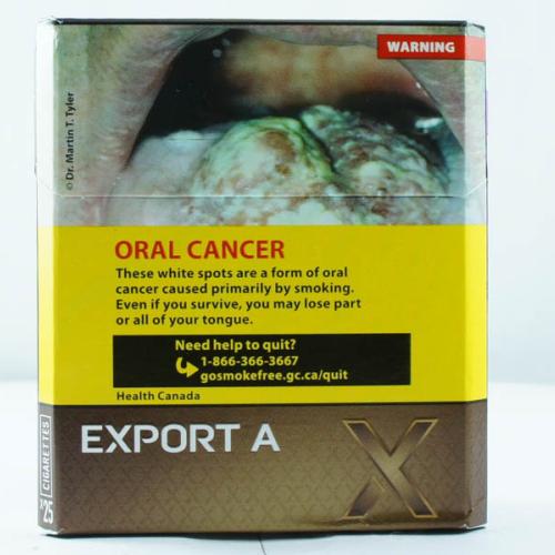 Export A Canada 20 Brand: Export A Country: Canada Province: Nova Scotia City: Halifax Collection Date: October, 2015 Price: 14.57 CAD (10.96 USD) Time Period: Post Menthol Ban *Selecting any of the linked attributes above will open a new search, showing all packs that match this attribute.